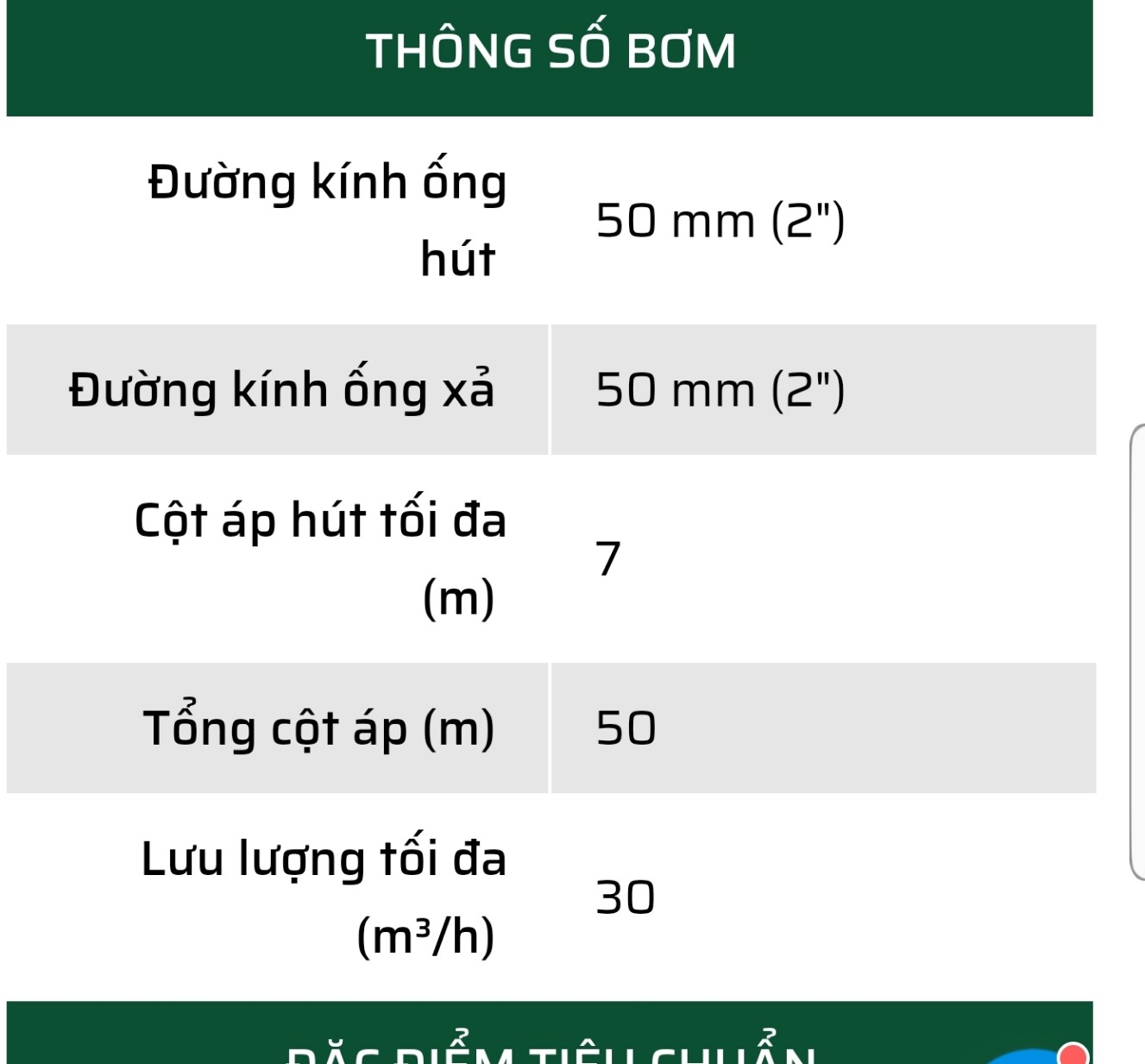 | THÔNG SỐ BƠM | |