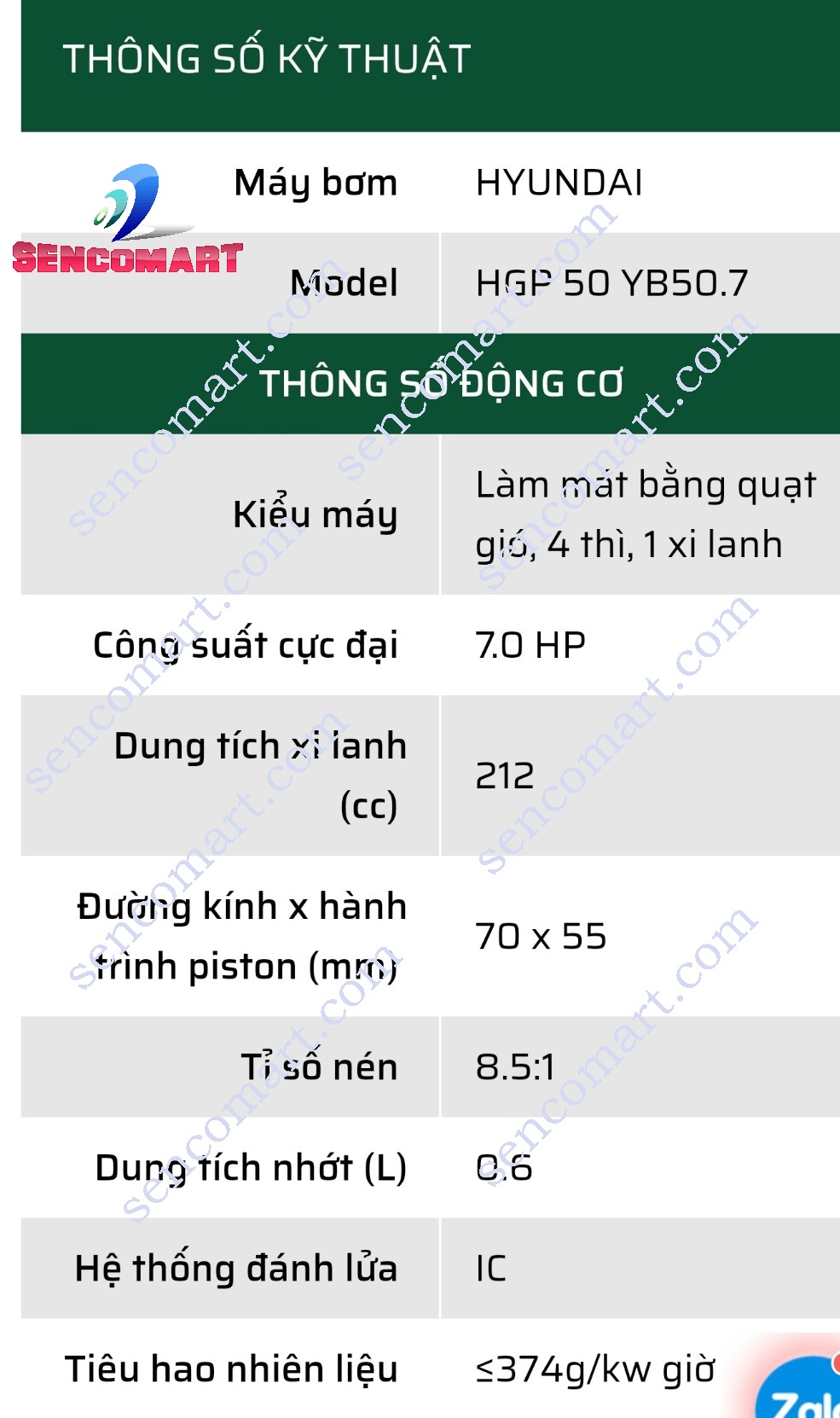 | Công suất cực đại | 7HP |